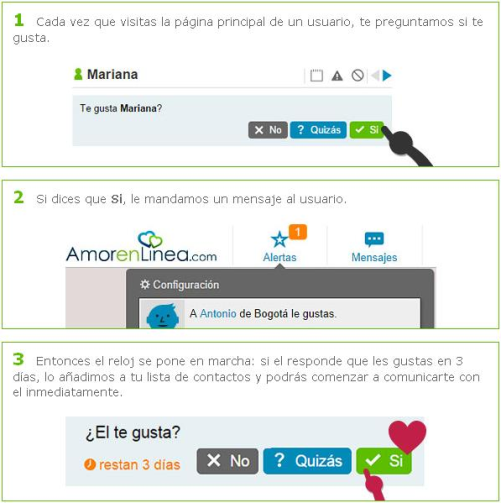 Amor en línea siempre trata de mejorar y satisfacer a sus miembros implementando nuevas herramientas o mejorándolas como pudimos observar en el análisis de AmorenLinea. Ahora para iniciar contacto con otro usuario solo tienes que decidir si te gusta. Ya no son necesarias las solicitudes de contacto, ni tiene límites diarios.