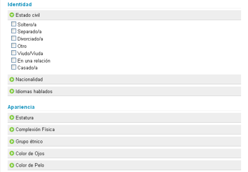 Debajo del recuadro de búsqueda podrá observar una amplia lista de filtros donde podrás segmentar la búsqueda de parejas ideales. Entre ellas tenemos la identidad, apariencia, estilo de vida y personalidad.